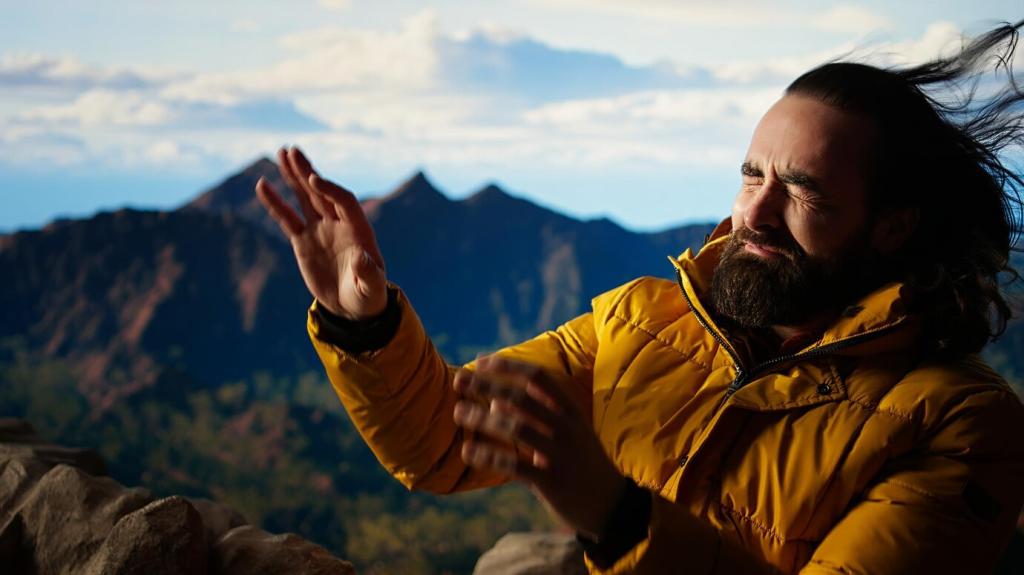 Plane mit einer kühlen Morgenstartzeit, reduziere die Gesamtbelastung bei Hitze und kalkuliere längere Pausen ein. Eine Leserin erzählte, wie sie durch ehrliche Selbsteinschätzung eine Tour verkürzte—und dank früher Einkehr entspannt dem Gewitter zusah.